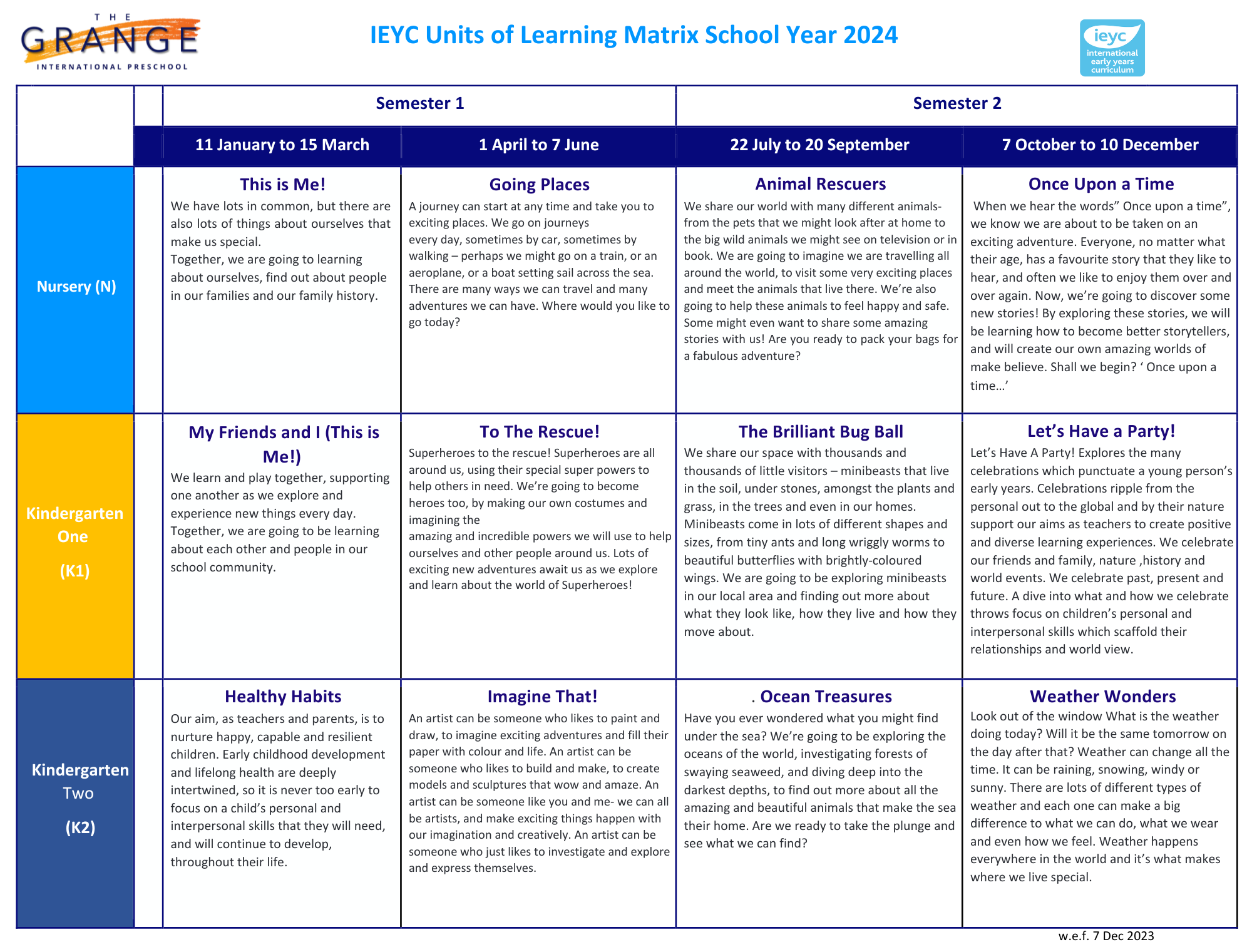 The IEYC places the child at the heart of the curriculum, ensuring that learning is personalised and that the curriculum revolves around the needs and interests of the child. It supports key areas of learning through enquiry and play-based approaches, encompassing all curriculum areas including personal, social and emotional development. The curriculum contains themed Units of Learning. These are sequenced through the IEYC Process of Learning. This captures children’s natural curiosity as a starting point and, within an enabling environment, balances child-initiated and teacher-scaffolded provision.